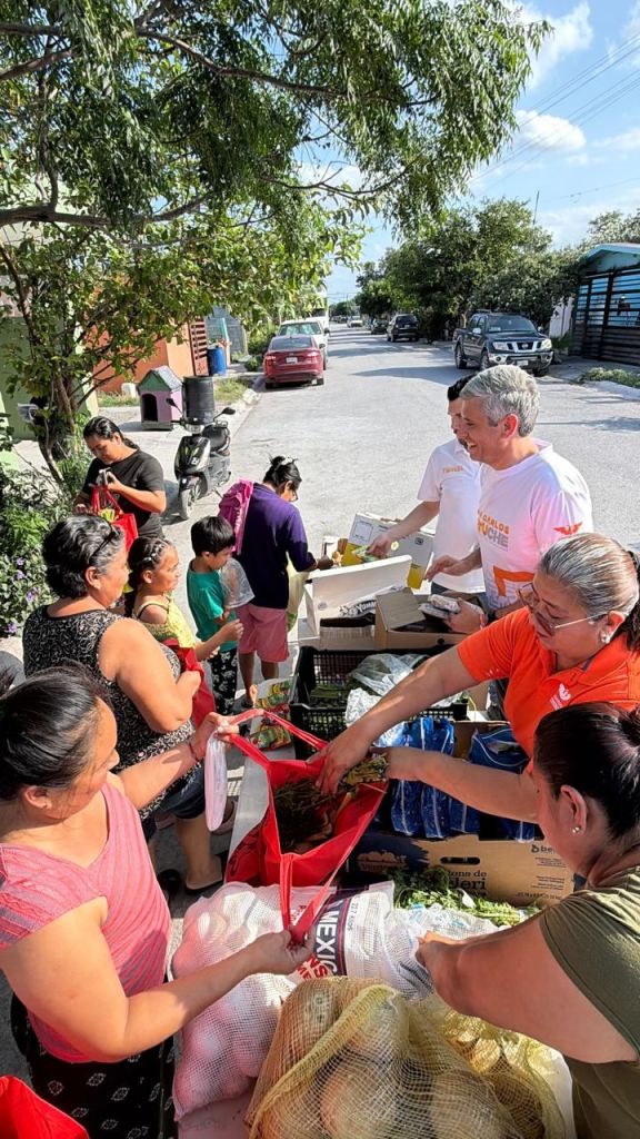 Reynosa, Tamaulipas. El diputado local Juan Carlos Zertuche, de Movimiento Ciudadano, llevó el programa Mercadito Naranja al fraccionamiento Campanario, beneficiando a decenas de familias con la entrega de frutas y verduras, así como atención cercana y directa.