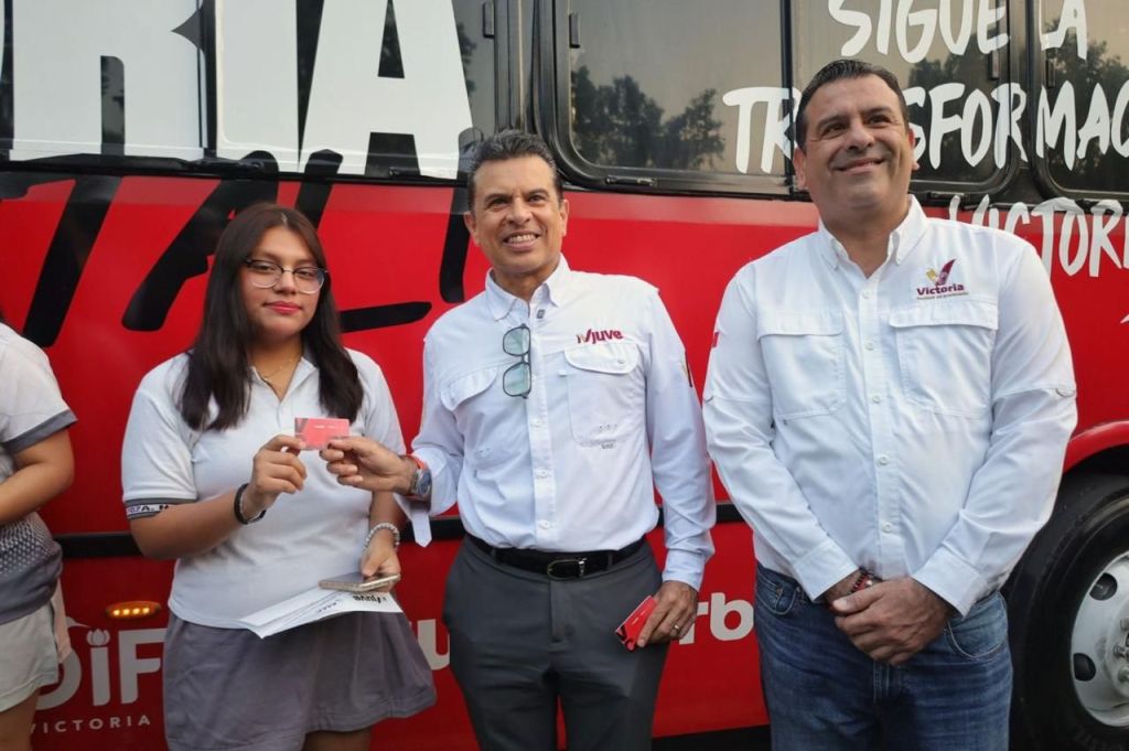 En punto de las 6 am, arribó en compañía del Jefe del Departamento de Participación de la Juventud Benjamín Martínez Ramos y el vocero de Jóvenes de Victoria Abraham Gattás Rodríguez, a la parada oficial de la unidad para hacer entrega de la tarjeta digital a los alumnos beneficiados.