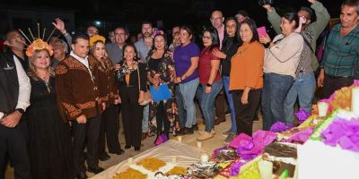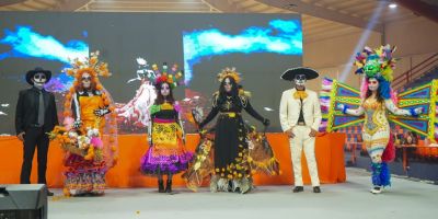 Entre colores y tradición, celebran Lalo y Lucy festival de Día de Muertos.
